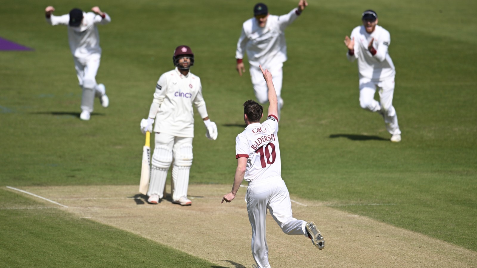 Anderson was ably backed up by Tom Bailey (three for 46), but the home side fought back courageously, led by an undefeated 54 from Lewis McManus to close on 215 for nine – just 20 runs short of avoiding the follow-on.